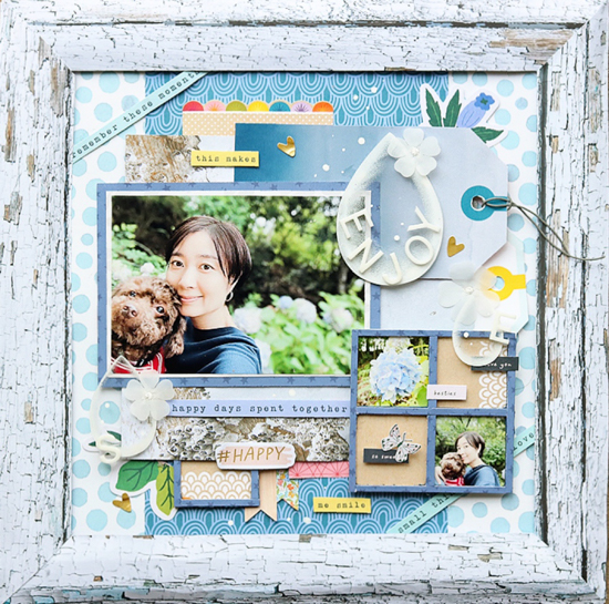 このレイアウトでは6分割のパーツをカットして4分割に。切り離したところもレイヤードに使いました。